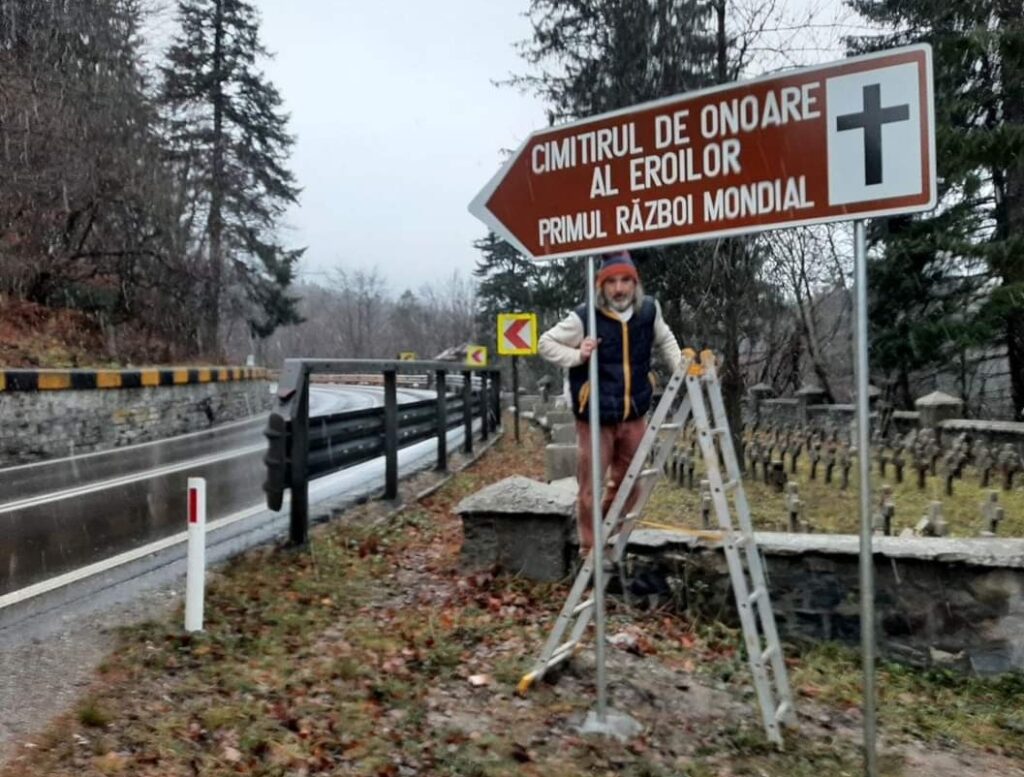 Asociația OsteoRe a finanțat indicatoarele rutiere pentru cimitirul Militar de pe DN1 în apropierea orașului Predeal.